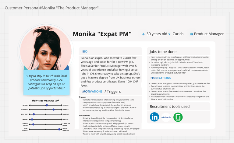 Through interviews with mid–senior Product Managers and tech sales professionals in Switzerland, we uncovered a recurring theme: most were already employed and not actively applying, yet still open to new opportunities.